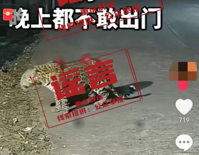 经黔江区公安部门核查,该信息系网民覃某为博取流量关注,采用移花接木手法编造的不实信息。中塘镇组织镇村干部对各村(居)第一时间开展现场排查与入户走访,未发现任何大型野生动物活动痕迹,当地居民生产生活正常,网传“黔江区中塘镇有花豹出没,居民晚上不敢出门”的说法不实。