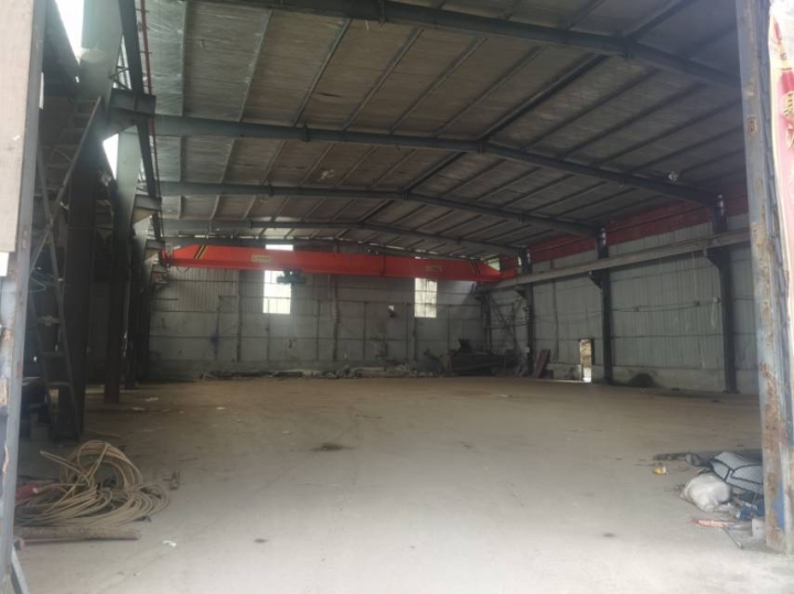 大型厂房出租,空间大,价格低,交通便利,有大型航吊配套,也可做仓库,旁边三层小楼可以一并出租作为员工宿舍或者办公室