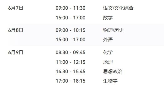 2024年高考时间