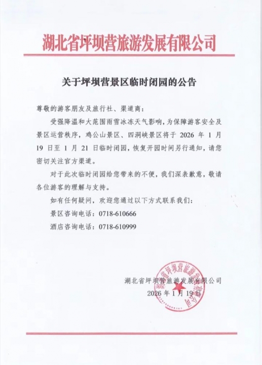 注意!1月19日—21日,咸丰县4个景区临时闭园!