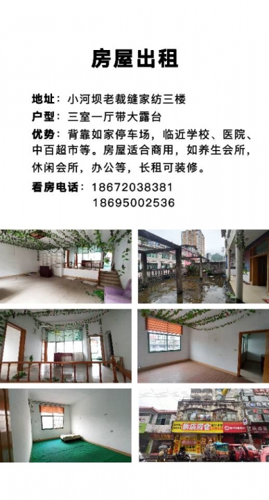 小河坝老裁缝家纺三楼,三室一厅带超大露台出租!建议商用!长租可装修,价...